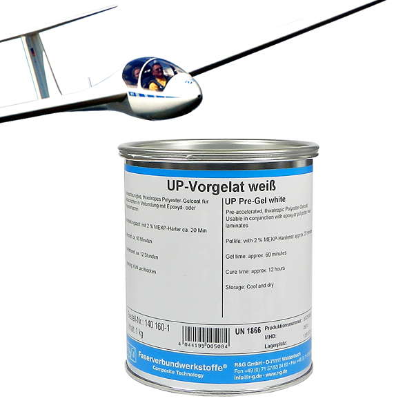 Thixotropic (non-drip) polyester gel coat that cures to yield tack-free white top layers in conjunction with epoxy laminates.